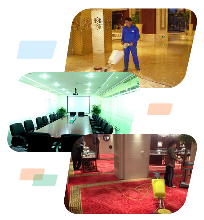 公司業務涉及寫字樓、公寓、酒店、商場、醫院、工廠、公司等各類公共場所委托的長期定點保潔、開荒清潔、地毯清洗、地面清洗、地板打蠟、石材翻新、潔凈養護、沙發及辦公座椅清潔等服務。
